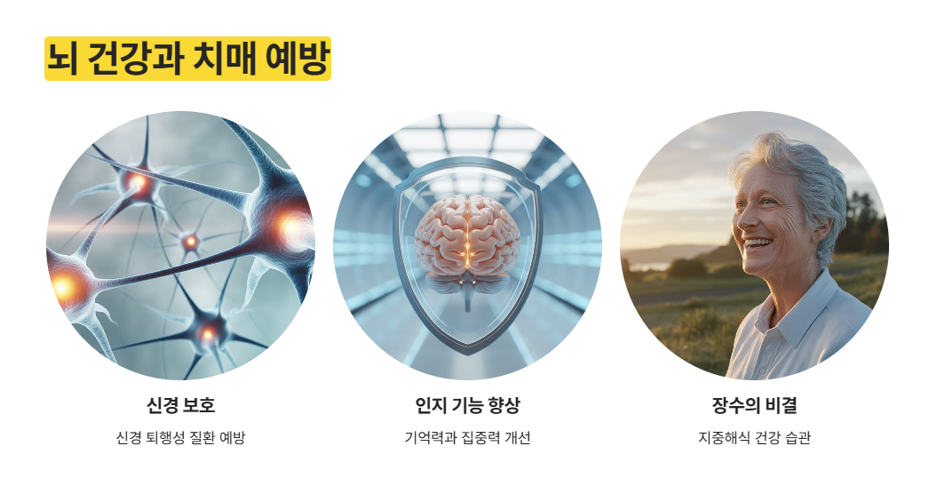 - 뇌 건강 증진, 신경 퇴행성 질환(치매 등) 예방