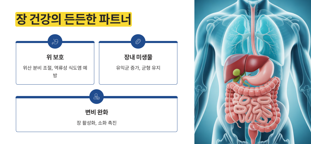 장 건강, 위장 보호, 변비 완화