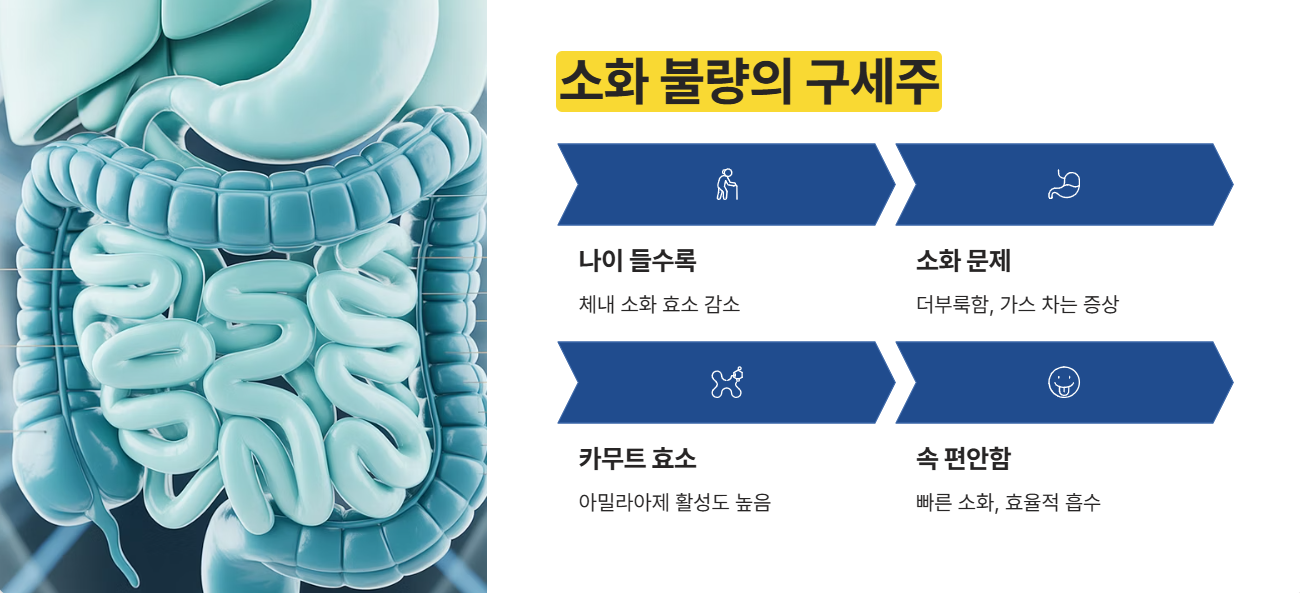 | 구분 | 일반 소화 | 카무트 효소 섭취 시 |
