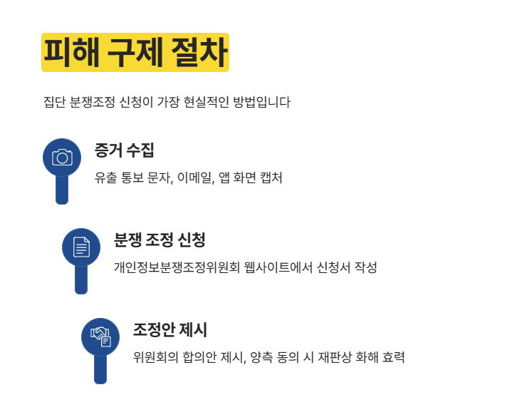"그럼 이제 어떻게 해야 돈을 받나요?" 사실 이게 제일 궁금하시죠. 개인이 대기업을 상대로 혼자 소송하는 건 솔직히 시간 낭비, 돈 낭비일 수 있습니다. 변호사 비용이 더 나올 수도 있으니까요. 그래서 제가 추천하는 현실적인 방법은 바로 '집단 분쟁조정' 신청입니다. 절차는 생각보다 간단합니다. 개인정보보호위원회 산하의 분쟁조정위원회를 통하는 건데요, 단계별로 살펴볼까요?